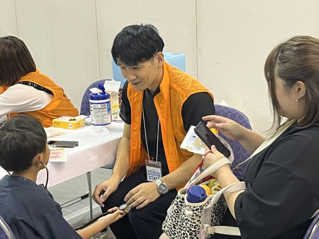 令和7年10月12日(日) 第42回市民健康まつりに協力団体として参加しました!当士会からは12名の会員に協力員として参加していただき、小児教材展示説明、簡易の発声・構音のチェック、スマーフォンアプリを用いた簡易聴力検査、嚥下簡易検査、各種相談対応を行いました。前々回より始まった「MEDKids(子供の医療職体験)」は今年も大盛況で、31名の小学生にSTの体験をしてもらいました!保護者からも「こどもがリハビリに興味があるので、大変参考になった」「子供がすごくうれしそうだった」といった意見をいただき、参加していただいたお子様もユニフォームを着てたくさん写真撮影をしてくれていました!各種相談は聴覚関連27件、小児関連4件、発音関連8件、飲み込み関連12件、その他2件の計53件あり、検査希望を含めほとんど絶え間なく相談がありました。今回の来訪者は358名と、より多くの方に言語聴覚士ついて興味を持っていただけたのではないかと思います。今後も来訪者に楽しんでいけるように頑張りたいと思います。協力スタッフの方も円滑な運営にご協力いただきありがとうございました。