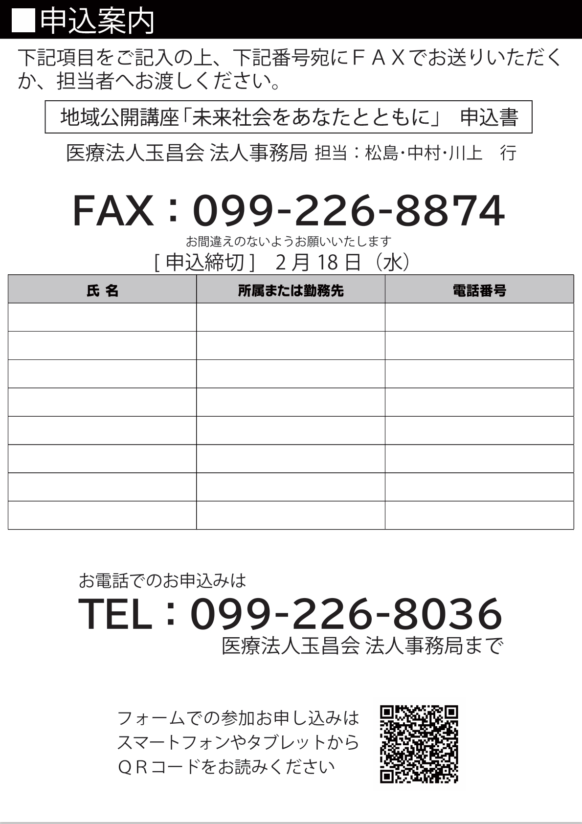 | 学会・研修会名 | 医療法人 玉昌会 地域公開講座 「未来社会をあなたとともに」アイラブ・ヒアリングキラメキプロジェクト ~聴こえのヒラメキが人生を照らすキラメキへ~ |