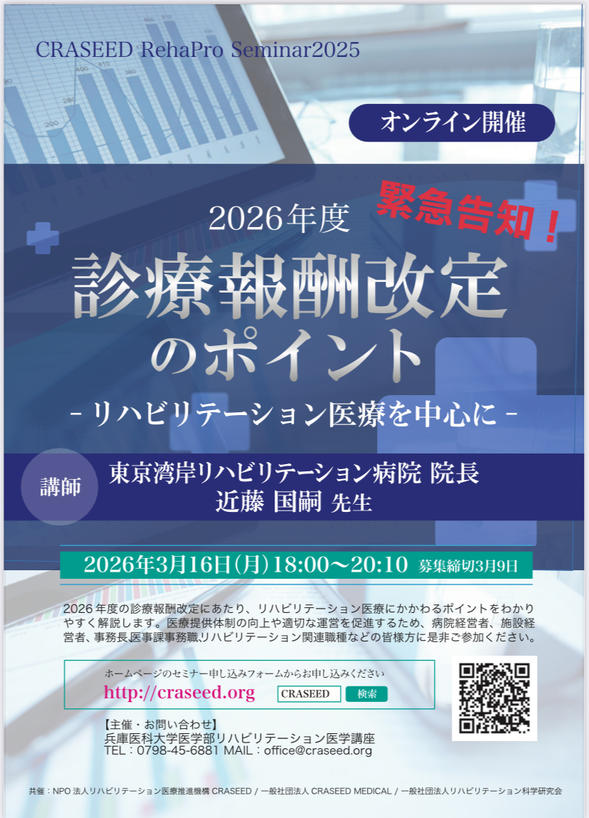 | 学会・研修会名 | 2026年度 診療報酬改定のポイント ーリハビリテーション医療を中心にー |